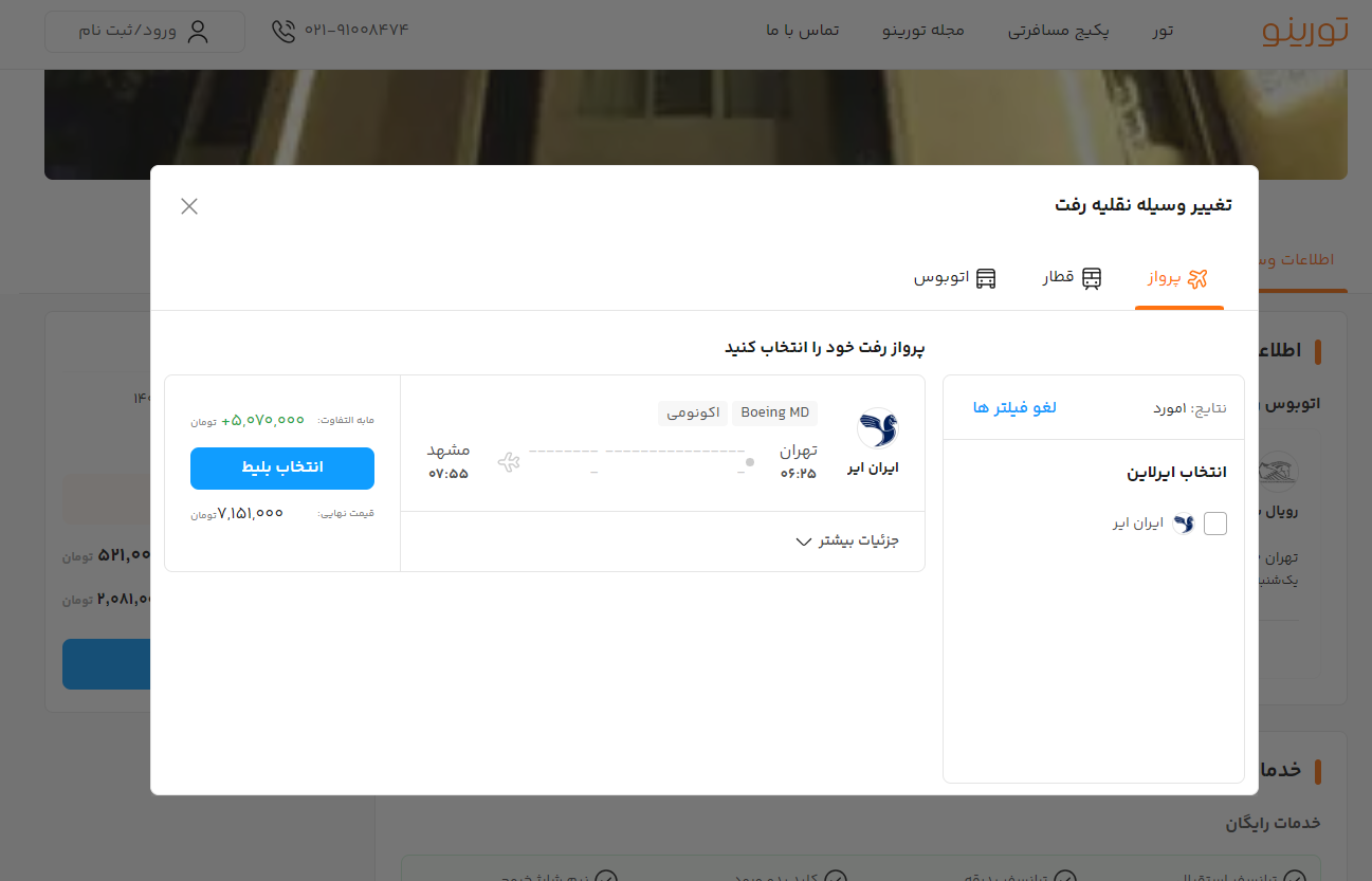 در این مرحله می توانید با کلیک بر روی وسایل نقلیه رفت و برگشت، تمام حالات مختلف را برای بازه زمانی انتخابی مشاهده کنید و پس از مقایسه قیمت ها مناسب ترین گزینه را انتخاب کنید.